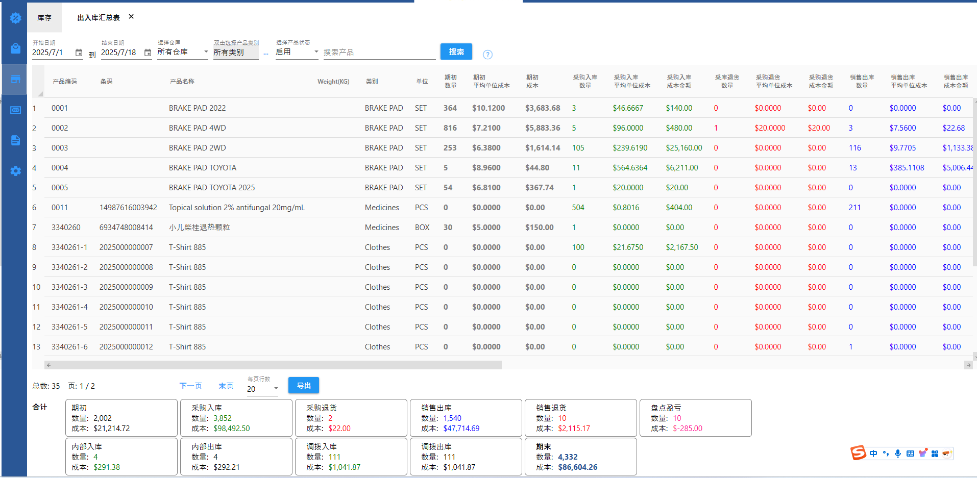 可以查询每个产品在一段时间范围内的出入库的记录。