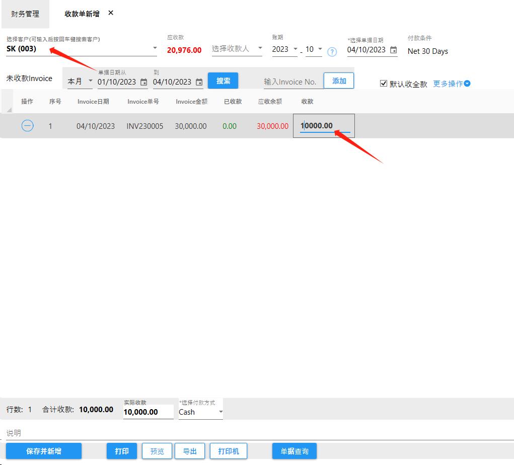 收款单需要和Invoice进行关联
