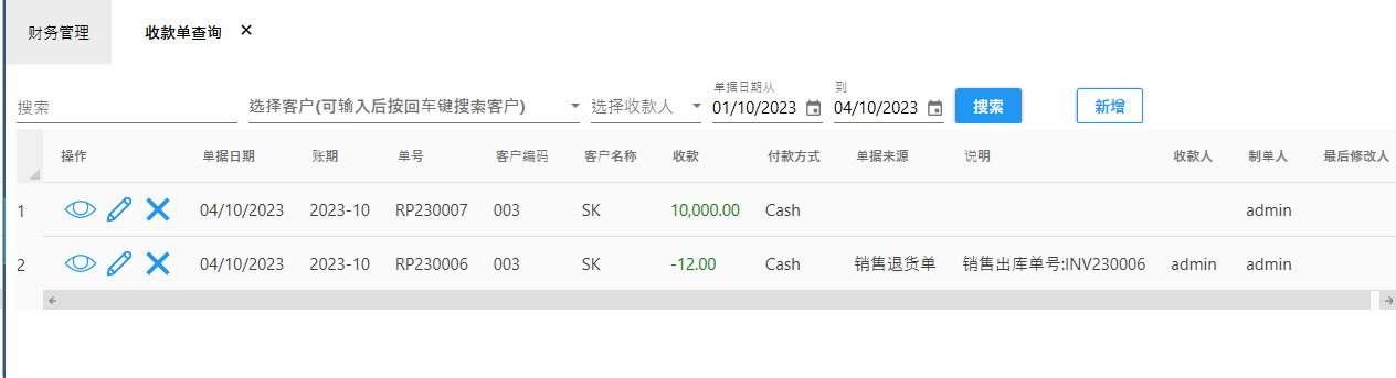当收到客户的款后,需要开收款单入账。