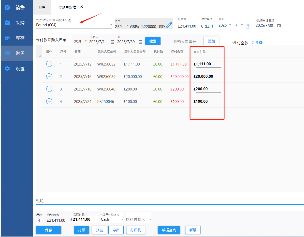 付款单需要和采购入库单进行关联 关联后,可以更新采购入库单的付款状态