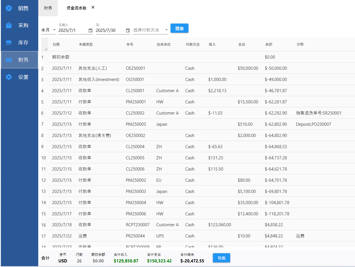 查看资金的所有收入和支出的记录。