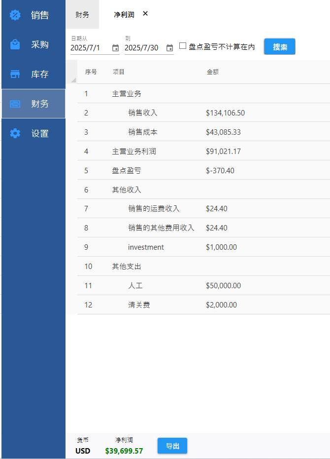 =销售收入-销售成本+其他收入-其他支出+盘点盈亏