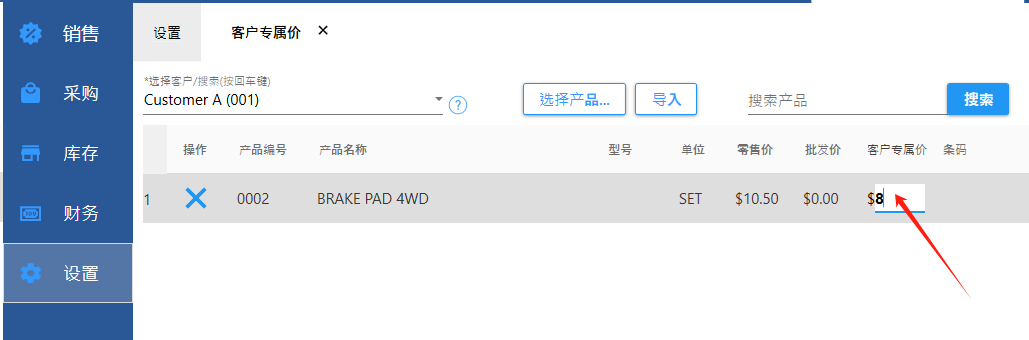 也可以不用设置这个专属价格,只需设置客户的价格等级为专属价,开单时,直接输入价格,单据保存后,系统会自动保存最后一次的价格。