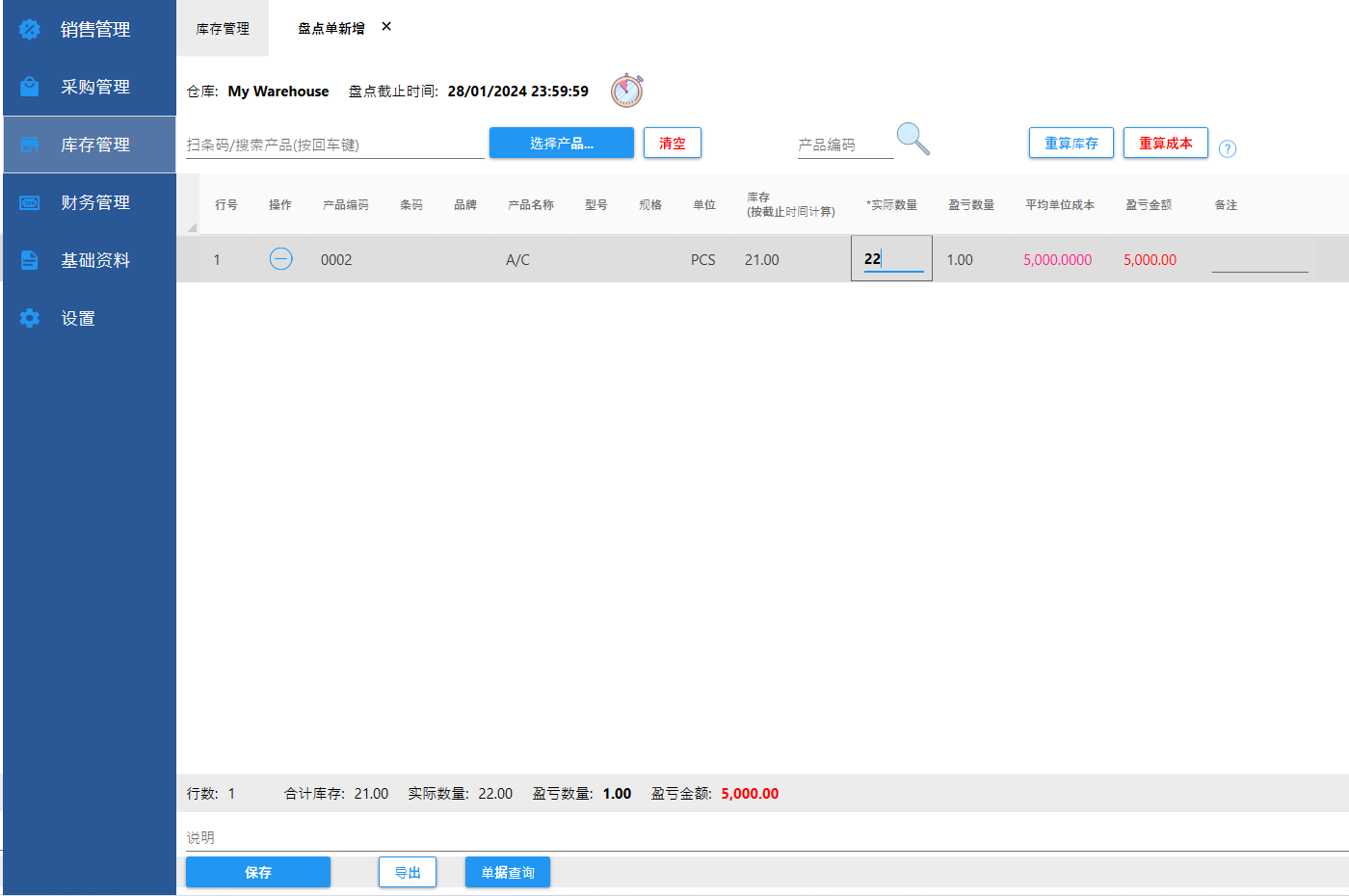 如果日常使用过程中导致的库存不对,通过【库存管理】-【盘点单】来修改库存。