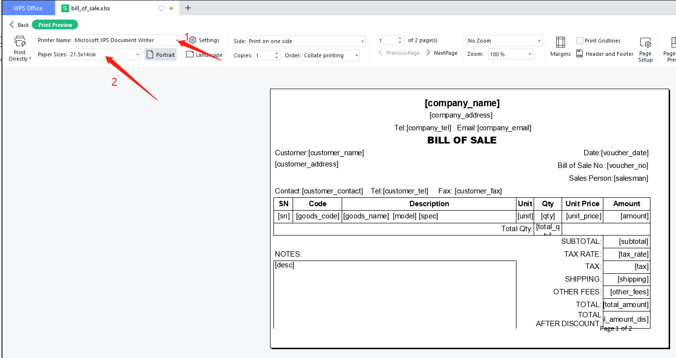 Below is an example of the size of a two-part printer paper (21.5x14.0cm)