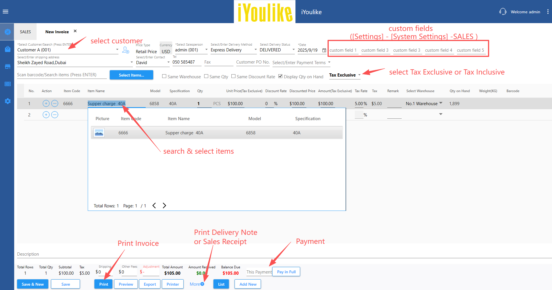 When items have been sold, an Invoice needs to be issued.Creating a new Invoice will reduce inventory Qty, and accounts receivable will be generated if the payment is not received.
