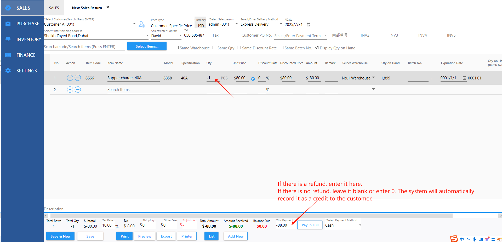 A. Create a sales return;