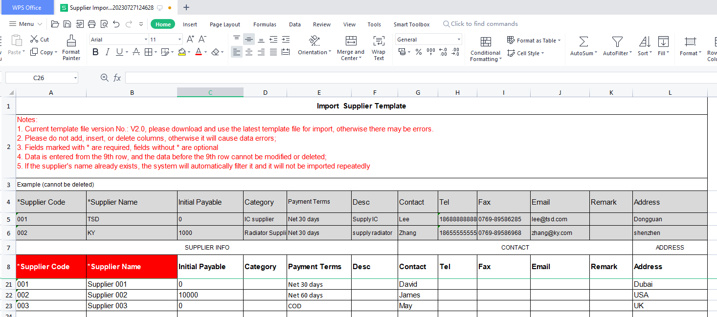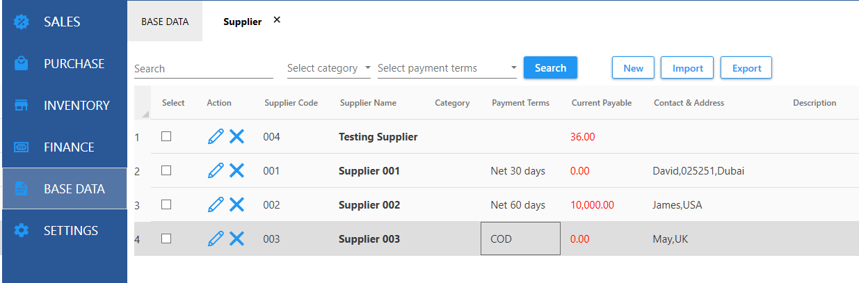 Initial Payable is the amount owed to the supplier before you start using the system.