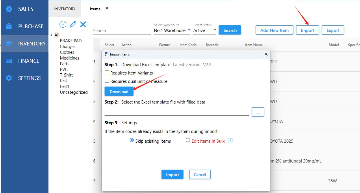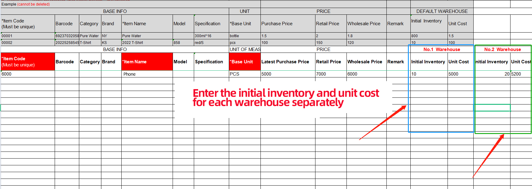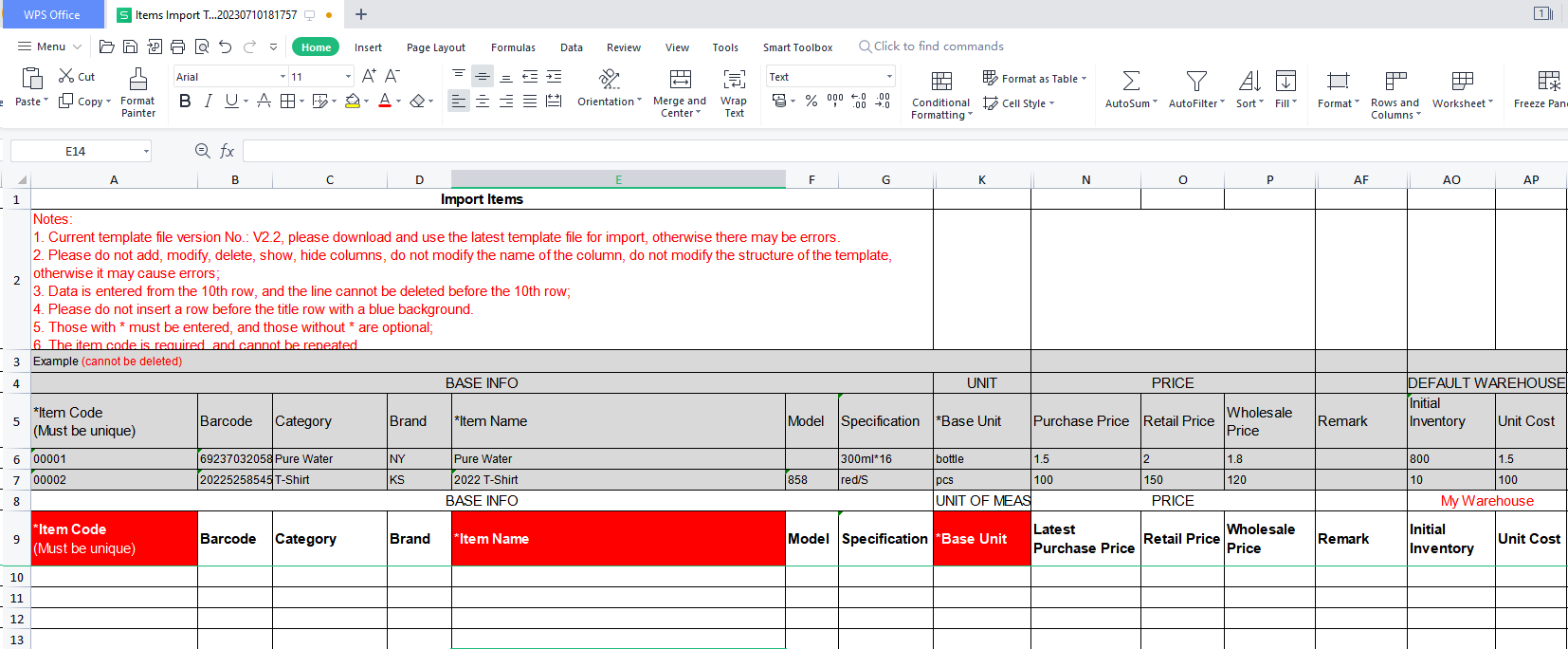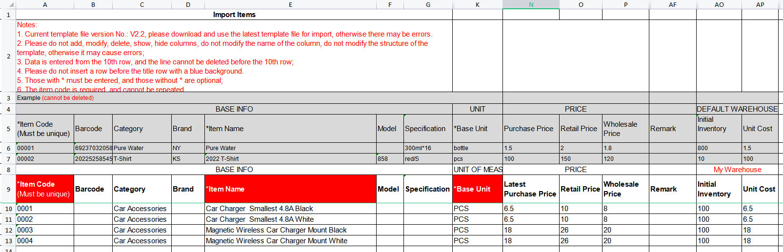 2.The warehouse name on the template file should be the same as the warehouse name in iYoulike System.