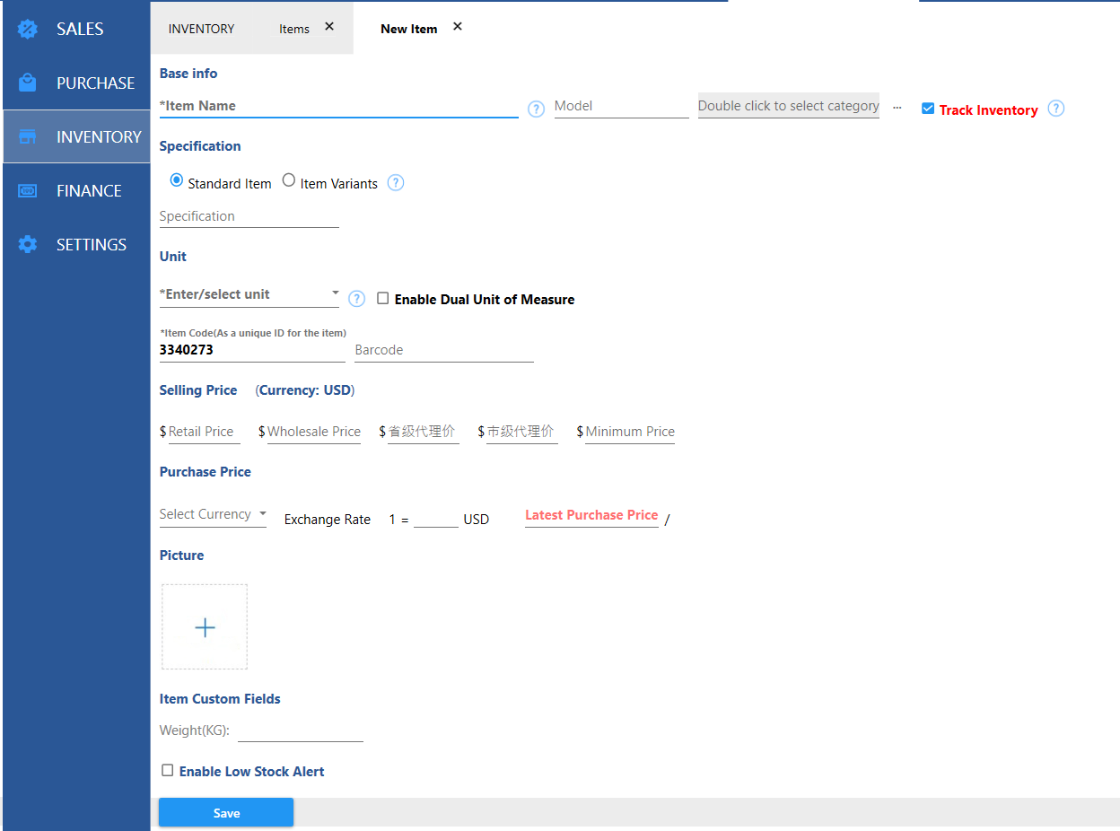 such as retail price, wholesale price, etc., you need to enter the price excluding tax, and then add additional tax rate when creating sales documents.