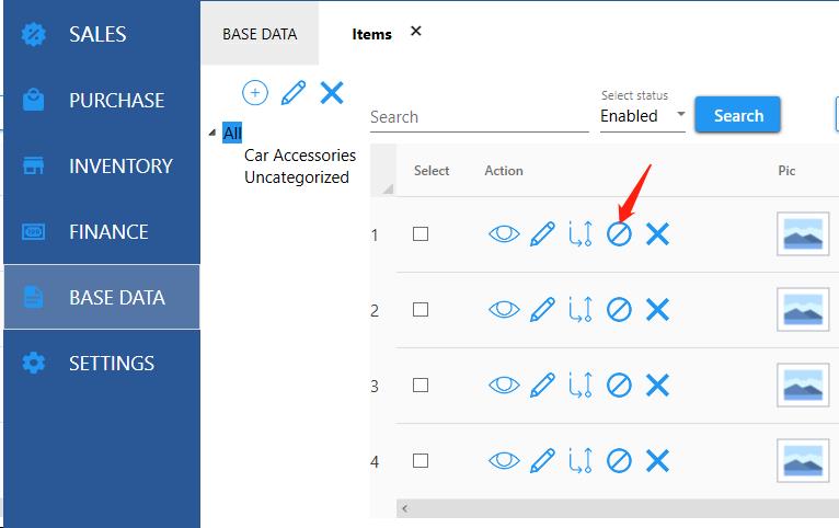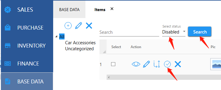 Items that have been disabled can be enabled.