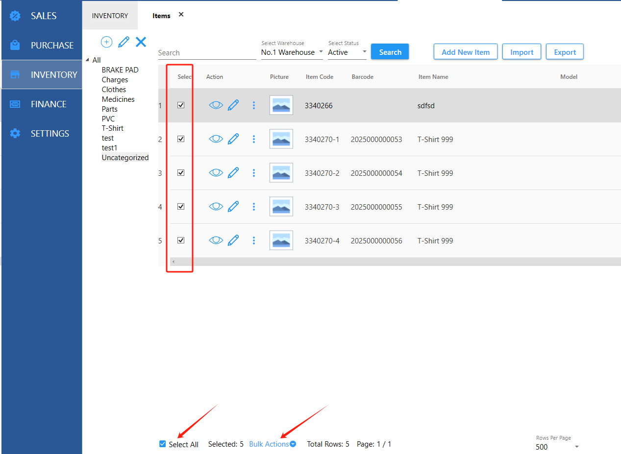 7.1.8 Delete Items in Bulk First select the items that need to be deleted, and then click Bulk Action