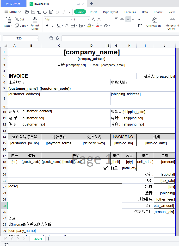 包含[ ] 为代码,如[invoice_no], [invoice_date],这些是代码。