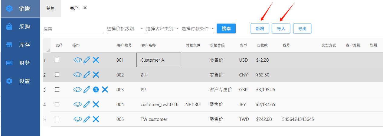 可以一个个录入或Excel批量导入客户