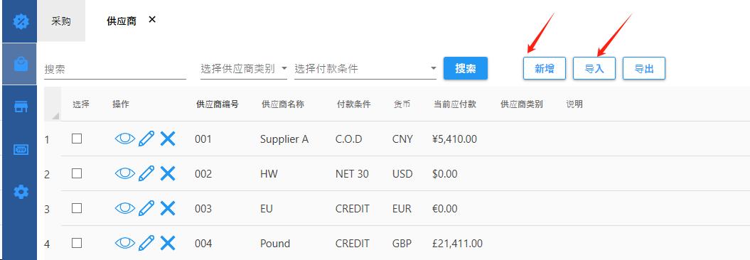 可以一个个录入或Excel批量导入供应商