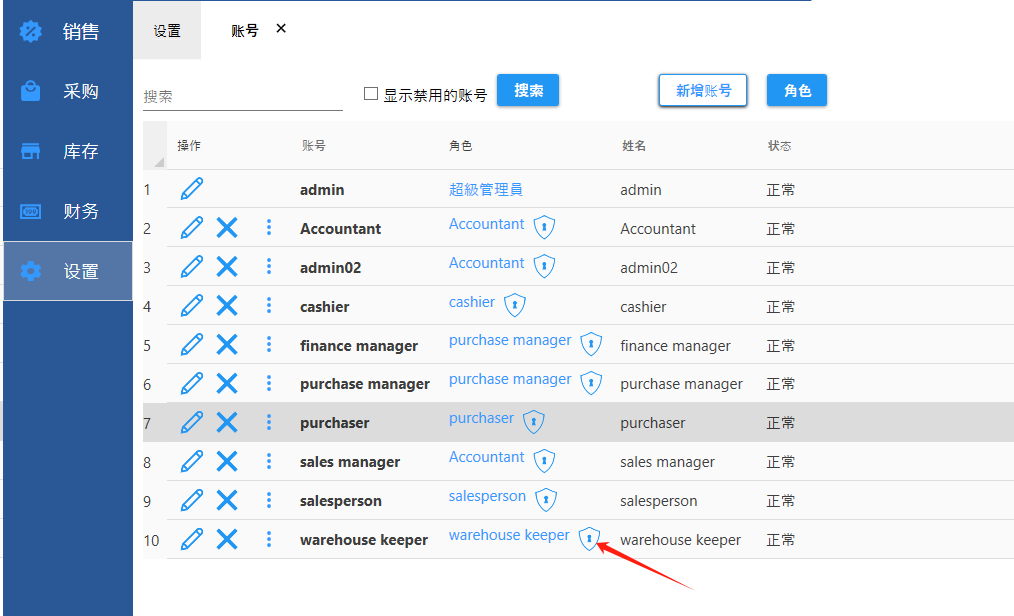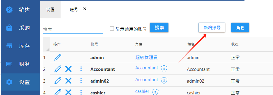 新增账号时,可选择角色(即账号的权限)
