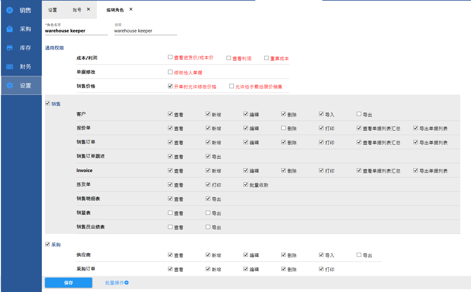 仓库设置 |