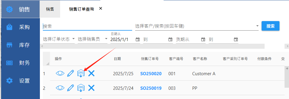 如果之前开过销售订单,在【销售订单查询】中可以一键生成invoice。