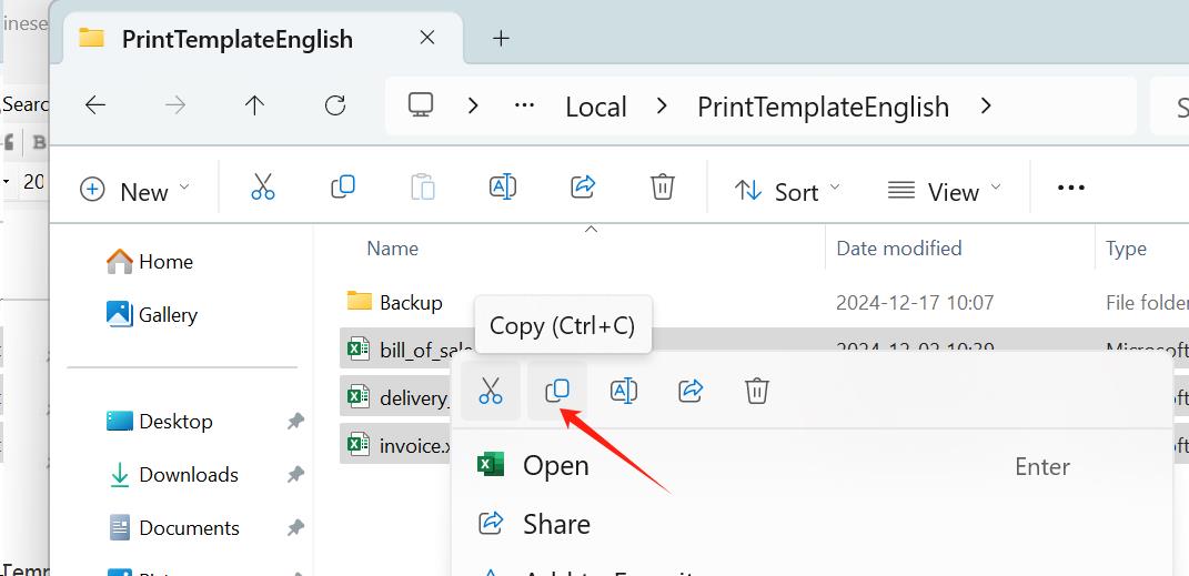 打开文件夹PrintTemplateEnglish,复制里面的所有Excel文件