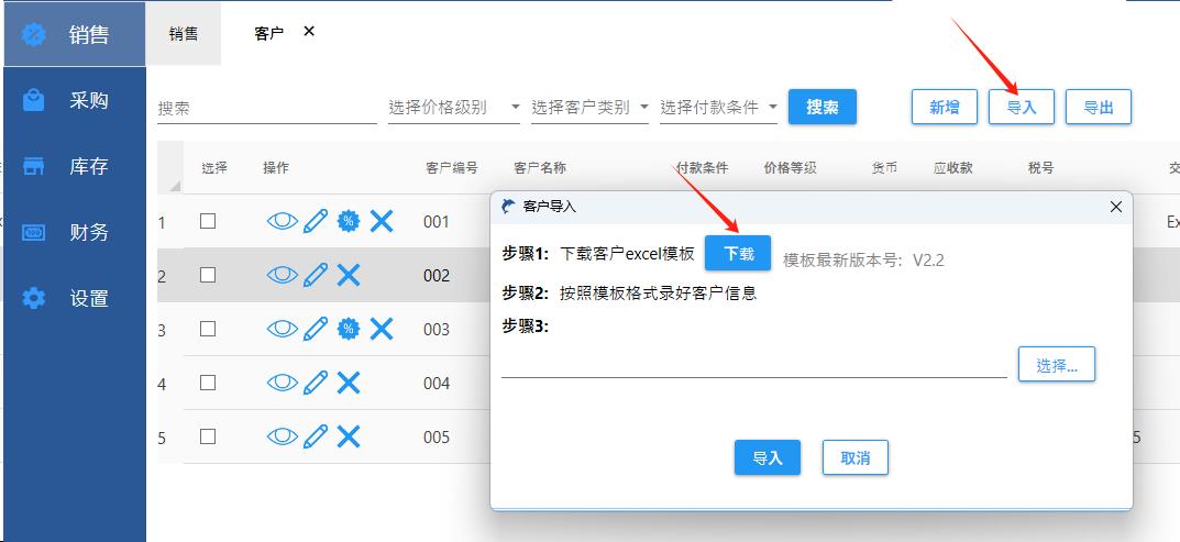 如果需要其他价格等级,请先在【设置】-【系统设置】-产品,开启自定义价格等级,然后再重新下载客户导入模板。