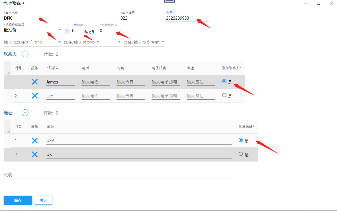 例如:在您使用系统之前,客户A有合计欠款10000,那么这里需要输入10000,在使用系统之前所有单据不需要录入系统。