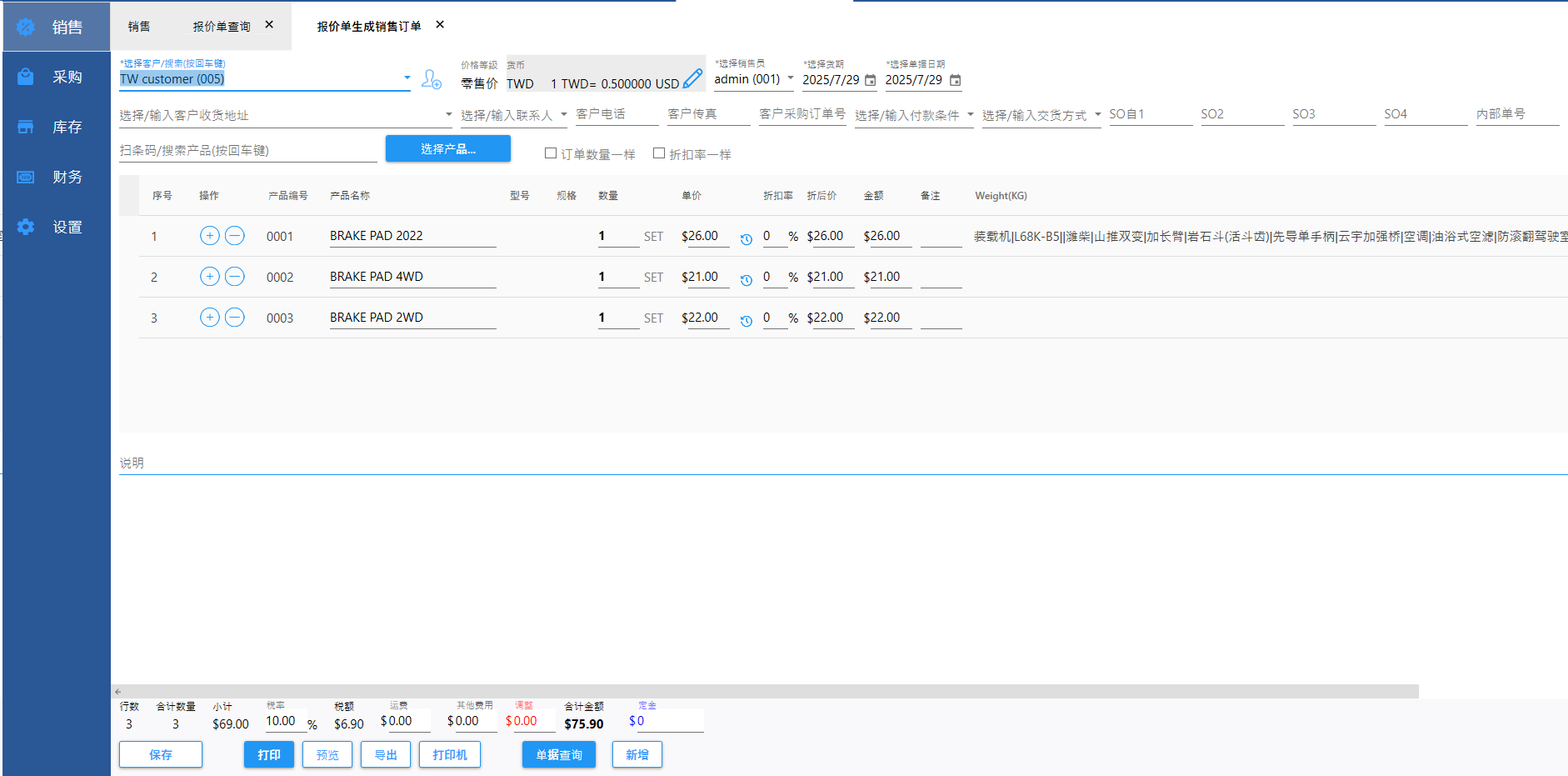 【销售】-【报价单查询】