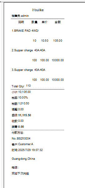 打印小票