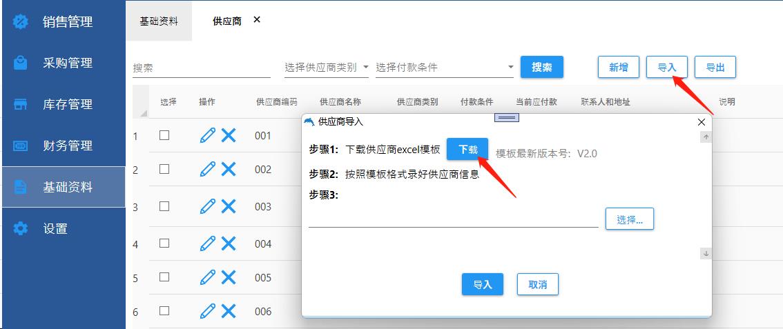 6.1.1批量导入供应商