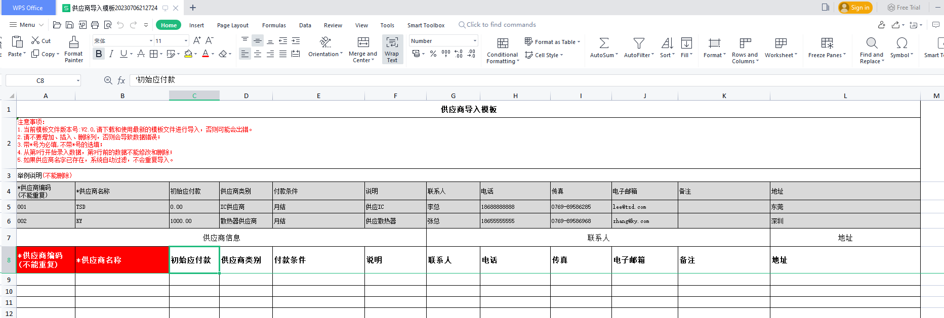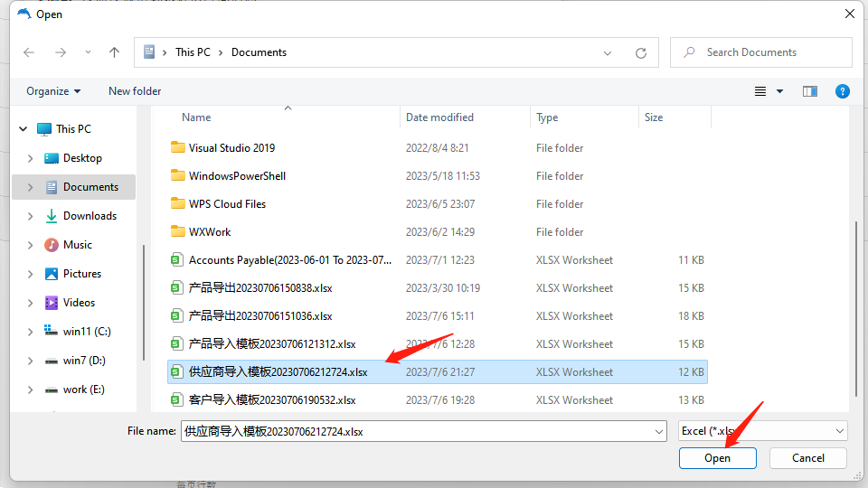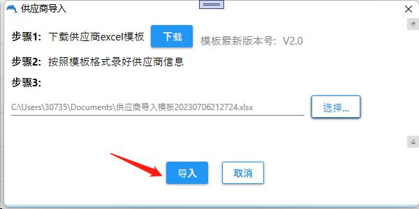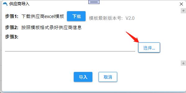 选择已录好资料的供应商导入模板文件