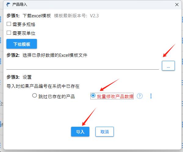 也可以在您原有的产品导入模版上进行修改,然后再导入一次。