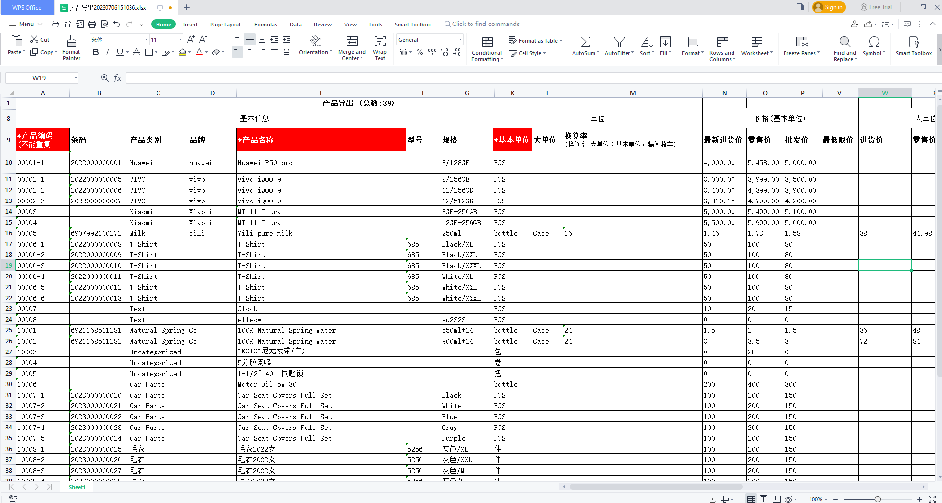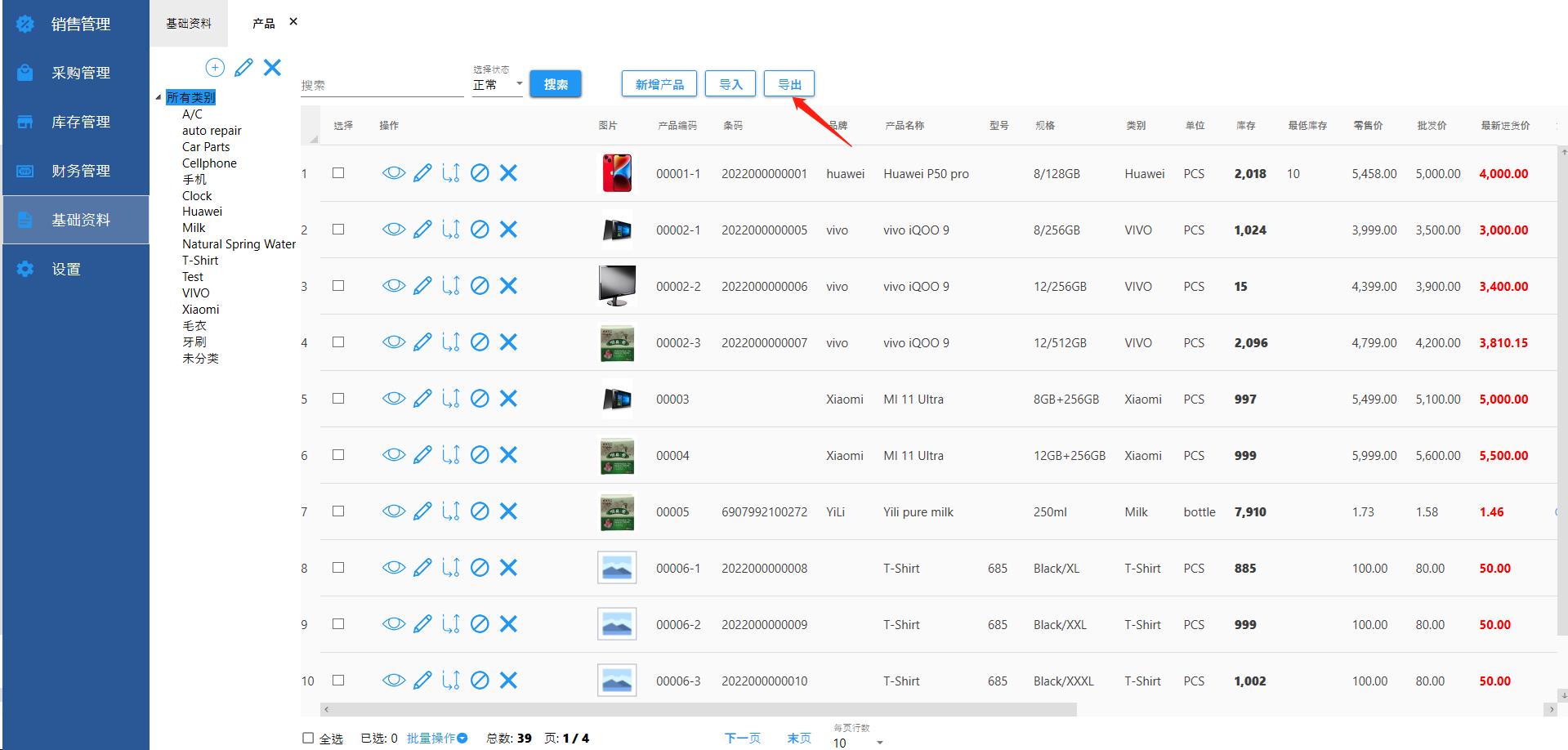 导出产品信息到Excel