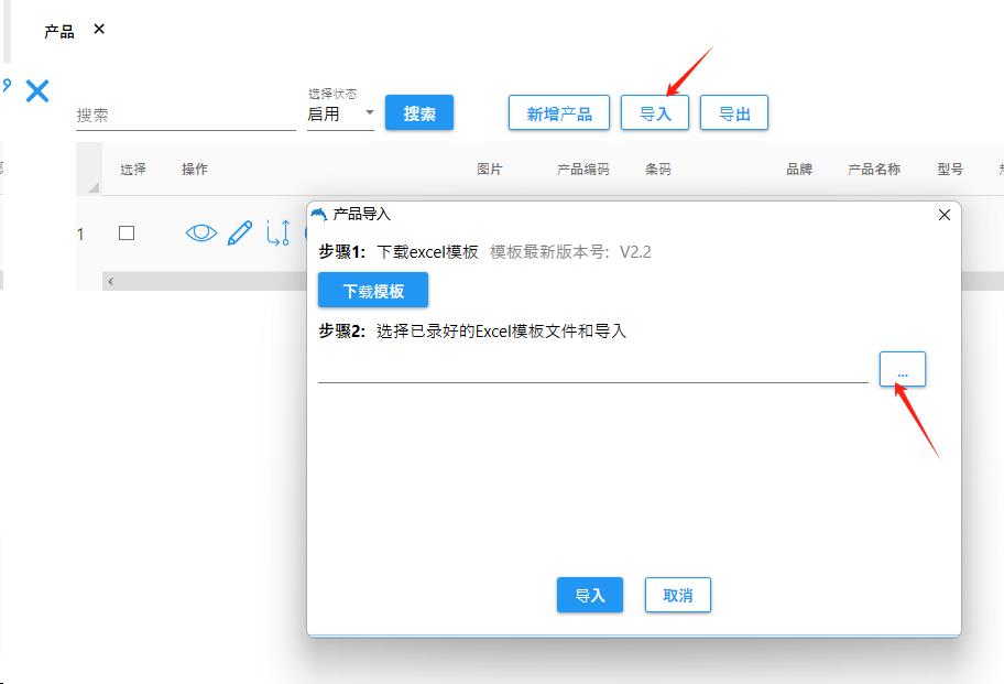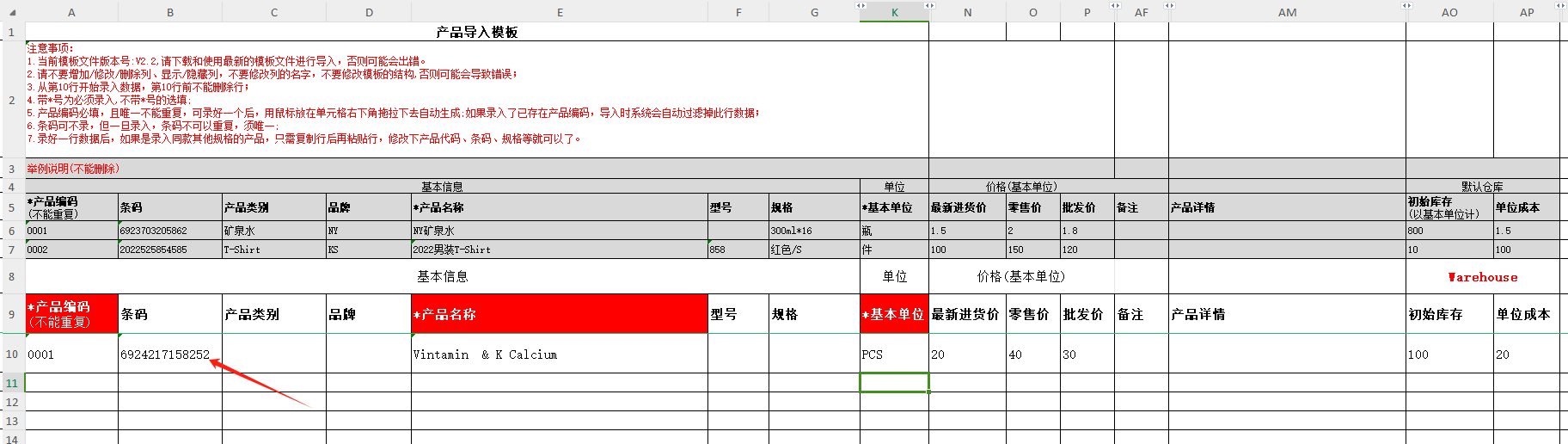 在产品导入模板中录入条码