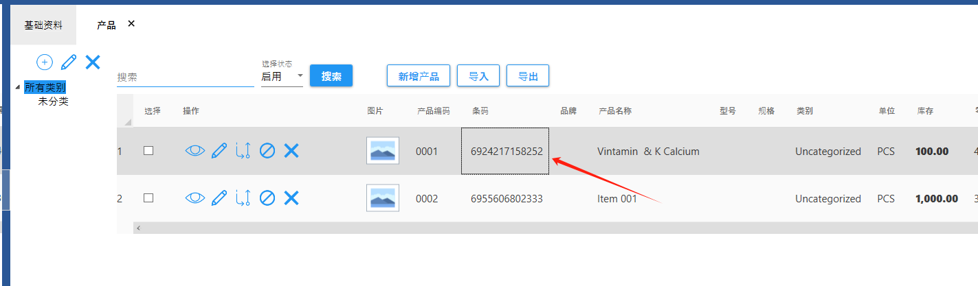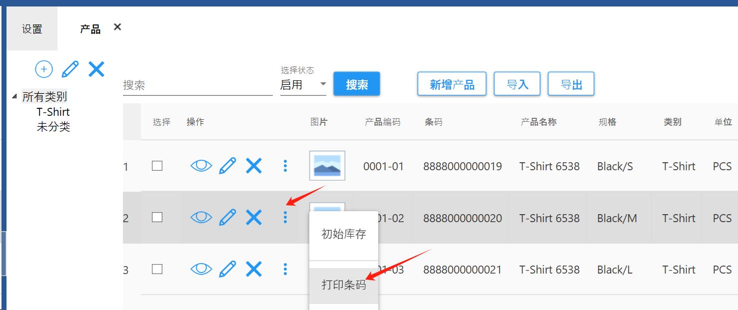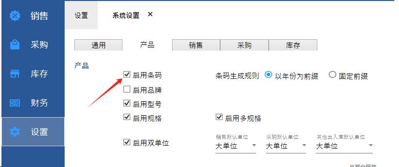 【设置】-【系统设置】,产品,启用条码
