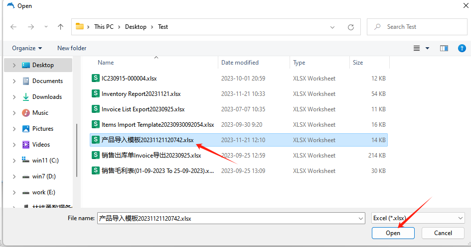 全部录好产品资料后,再导入到系统。