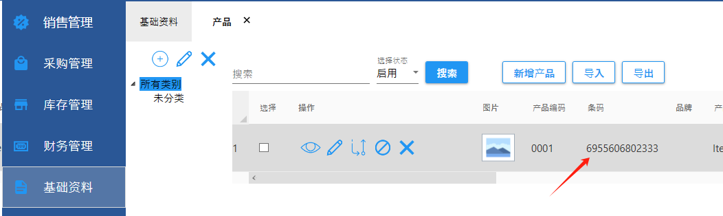 在批量导入产品时,录入产品的条码,一起导入到系统。