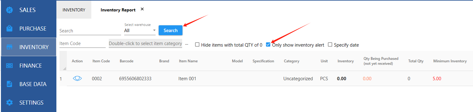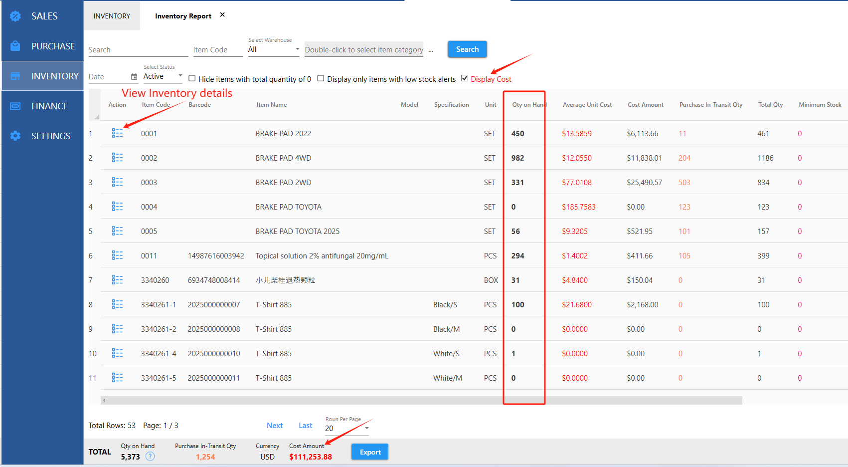 The inventory report can check the inventory and inventory details, and the records of each entry and exit of the warehouse.
