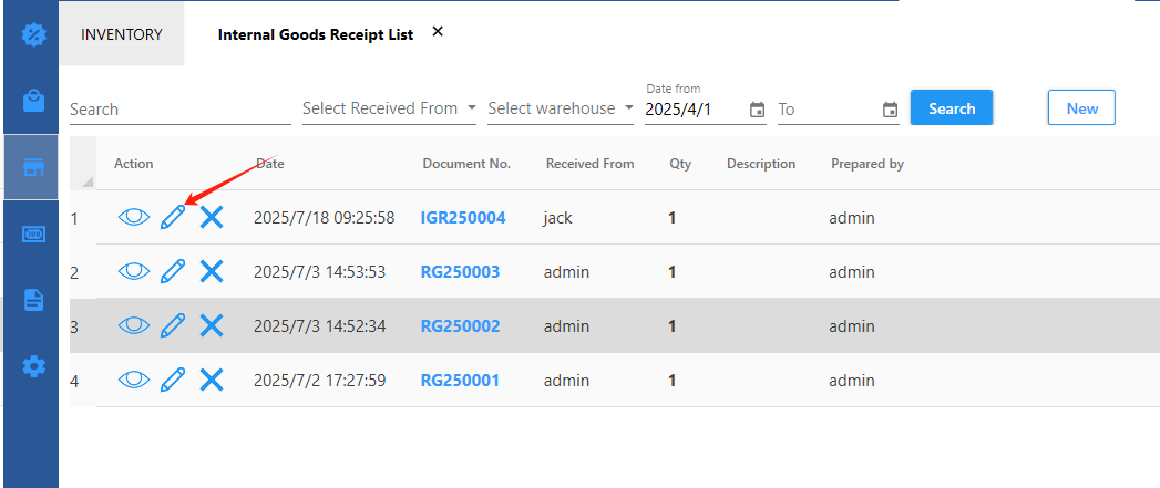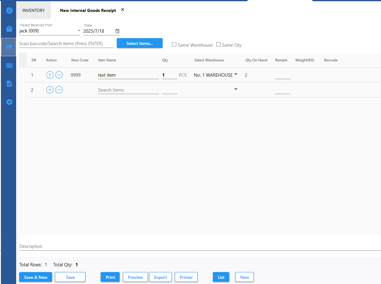 Internal Goods Receipt refer to the return of items by employees to the warehouse, etc., and the inventory qty will increase after creating Internal Goods Receipt.