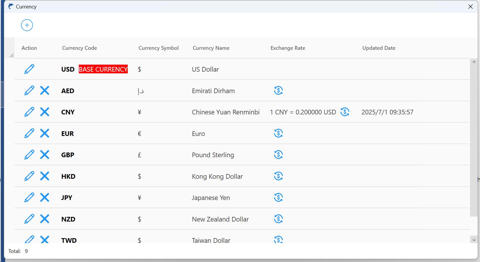 Basic currency: It is the currency unit used when entering sales prices, and is also the unified currency unit for system reports and cost calculations. Once a transaction occurs, the basic currency cannot be modified.