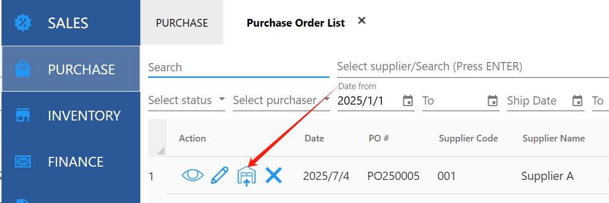 After receiving the goods from the supplier, a purchase receipt needs to be issued. Once the purchase receipt is issued, the inventory will increase.