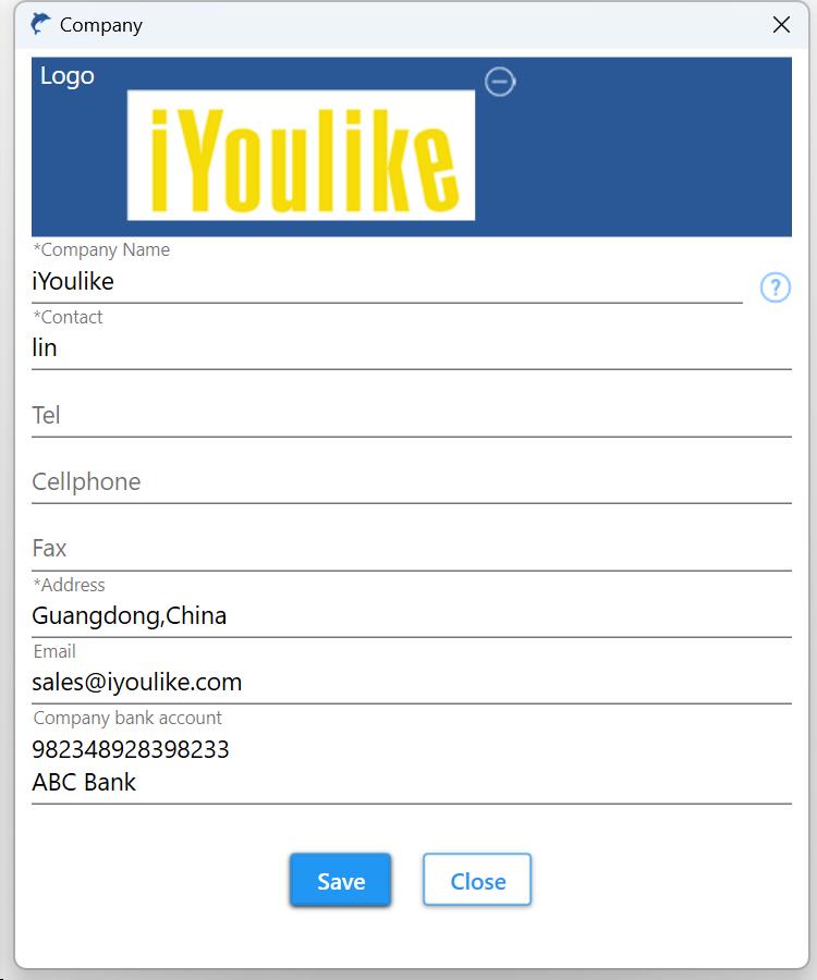 This company information will be automatically applied to printed documents.