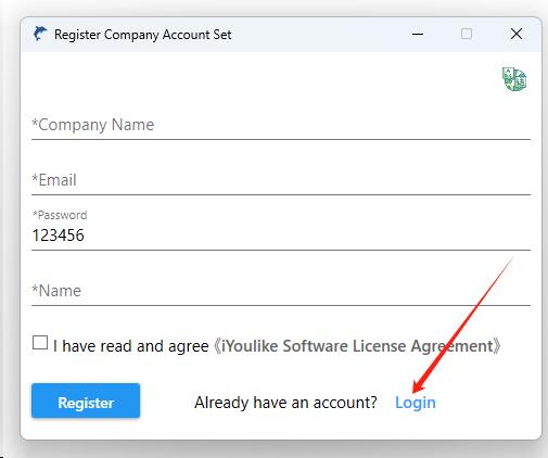 Note: After installing iYoulike on other computers, do not register an account set again. Click button [log in] . This will allow other