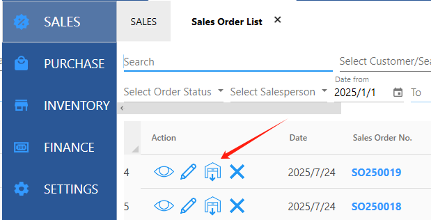 If you have created a sales order before, you can generate an invoice with one click in Sales Order List.