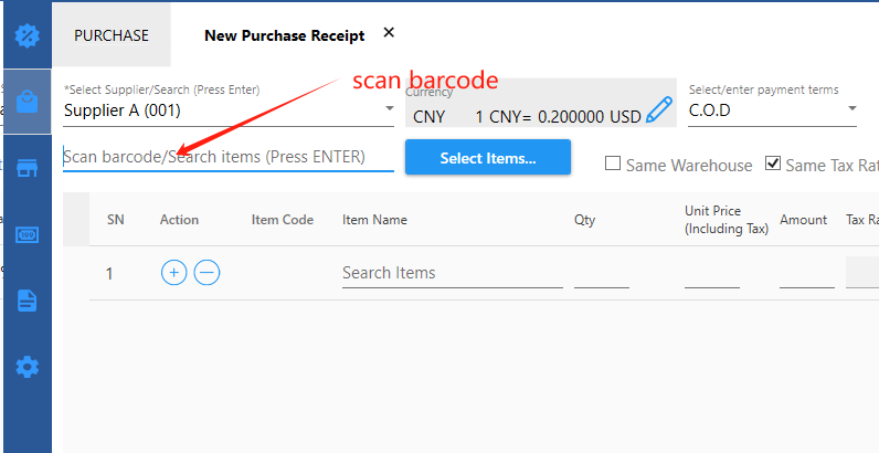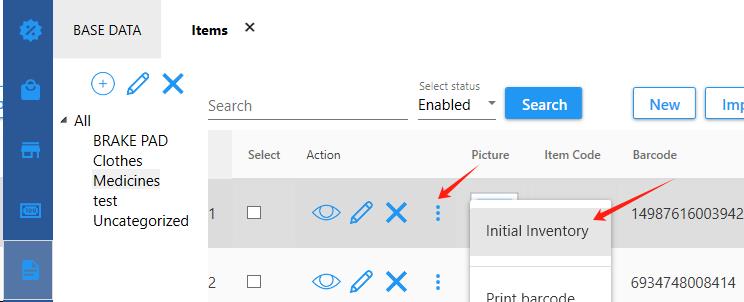 If you have some products in stock before you start to use the system, you can enter them into the initial inventory in the system.