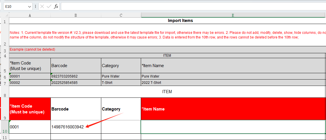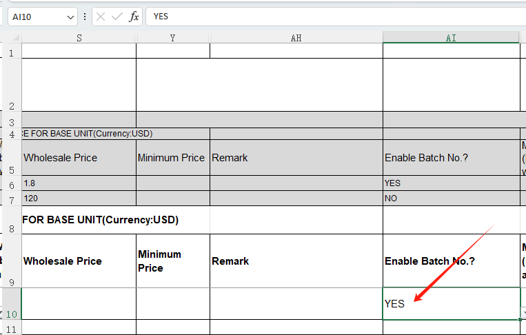 or If you are importing products in batches, select YES in the template [Enable batch No.]: