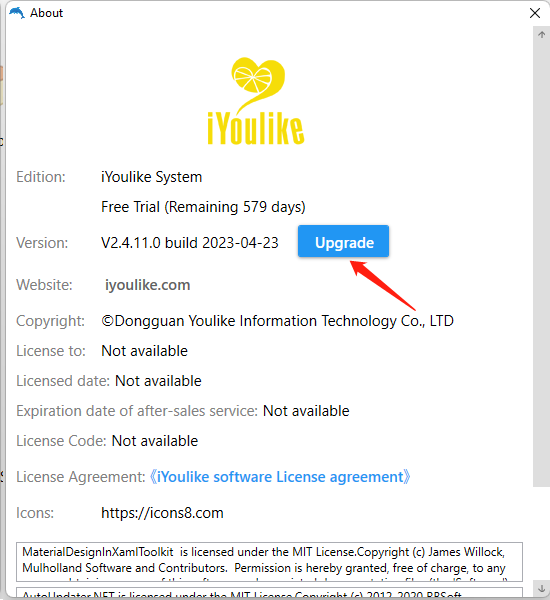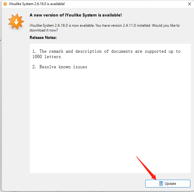 When there is a new version released, open iYoulike System, the upgrade window will pop up automatically, just Click the Upgrade button.
