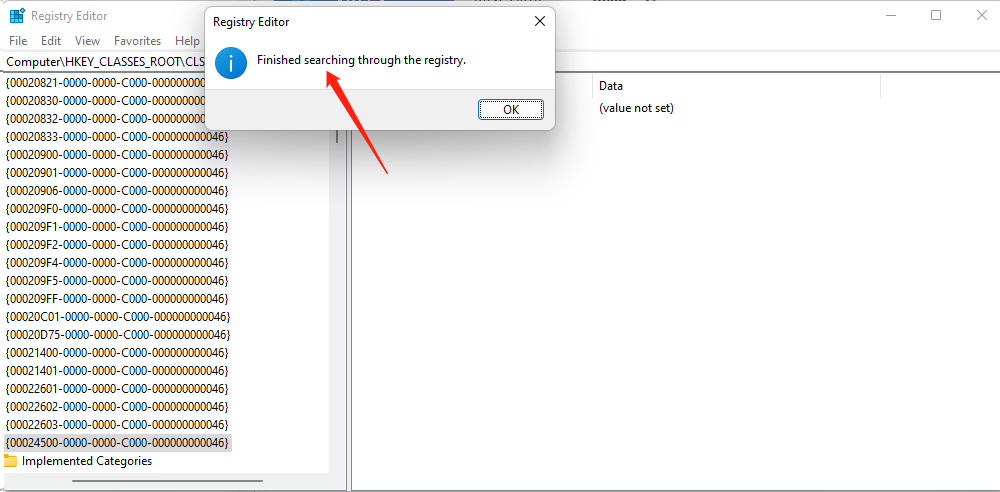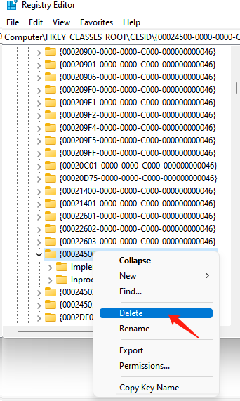Step 2. Delete {00024500-0000-0000-C000-000000000046} from the Regedit