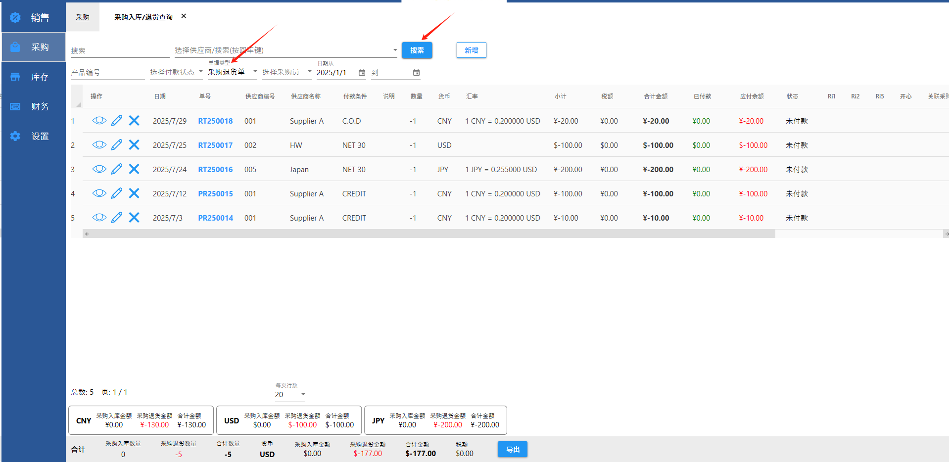【采购】-【采购退货单】