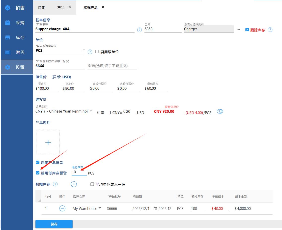 库存预警可查询哪些产品低于最低库存,方便及时补货。